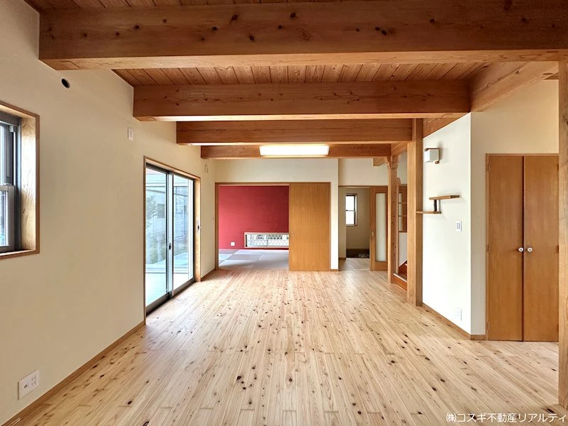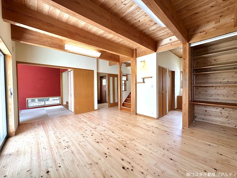 新産住拓施工・収納豊富なリフォーム済み物件!休日のBBQやペットの遊び場にもピッタリなお庭もあり、無垢材の床は素足でも心地よく珪藻土壁の和室はお昼寝や客間としても利用できます♪