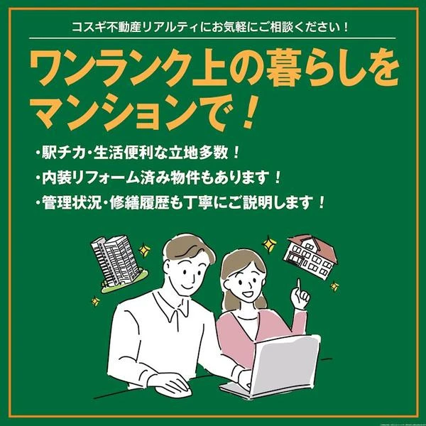 | 特徴 | 耐震構造、平坦地、2面採光、24時間換気システム、前面棟無、リノベーション、耐火構造、分譲タイプ、都市近郊、整備された歩道、人通りが多い、近隣ショッピング施設あり、近隣住宅街、2F以上、3方角住戸、角住戸、高層階、東南角住戸、陽当たり良好、キッチン未使用、一部フローリング、リビングの隣和室、南面2室、南面リビング、眺望良好、通風良好、山が見える、大規模リニューアル済み、2F以上,2面採光,3方角住戸,アルコーブ,オートロック,リビングの隣和室,角住戸,高層階,出窓,床の… | ||