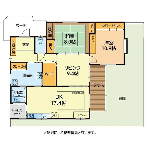 | 設備 | 3口以上コンロ、システムキッチン、フローリング、室内洗濯機置場、ウォークインクローゼット、トイレ、バス・トイレ別、バス、温水洗浄便座、上水道、水道その他、ⅠⅠ型キッチン、キッチンに窓、ガス給湯、クローゼット、玄関収納、洗面化粧台、洗面所に窓、洗面所独立、玄関ポーチ、玄関ホール、床の間、3口以上コンロ,II型キッチン,ウォークインクローゼット,ガス給湯,キッチンに窓,クローゼット,システムキッチン,トイレ有,バス・トイレ別,バス有,フローリング,温水洗浄便座,玄関収納,室内洗濯機置場,洗面化粧台,洗面所に窓,洗面所独立 | ||