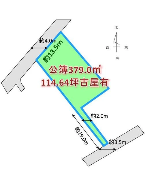 | 土地面積 | 379㎡(公簿) | 私道面積 | 私道負担面積無 |