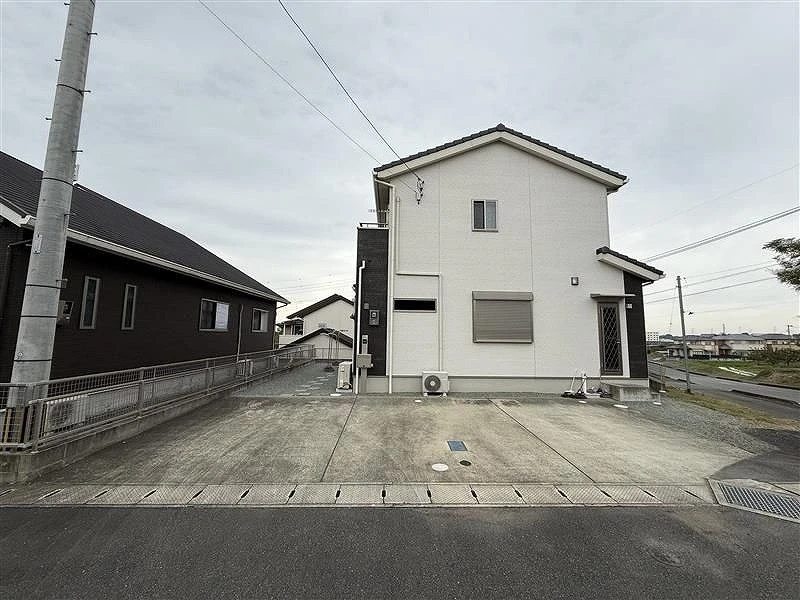 築8年の綺麗な戸建をお預かりしました!コストコまで車で約7分でお買い物楽々♪北東角地で、東側の駐車場には並列3台駐車可能!屋外には大型の物置があり、趣味の道具などを充分収納可能!